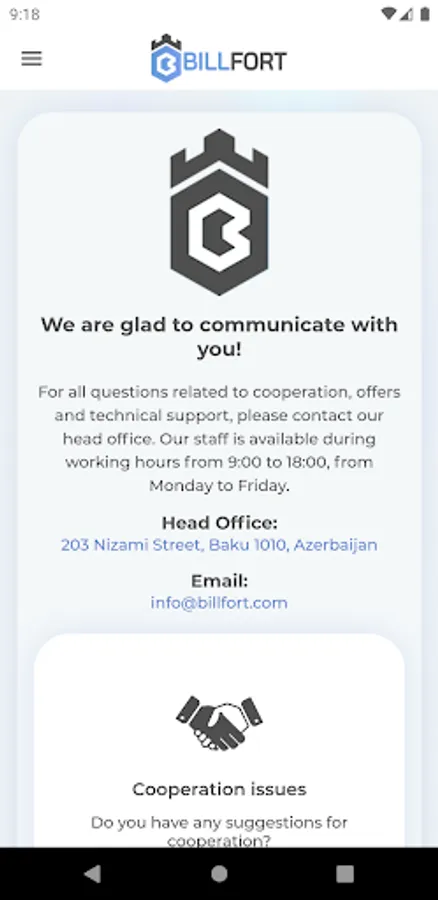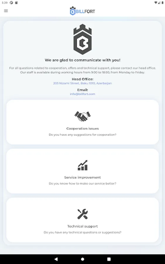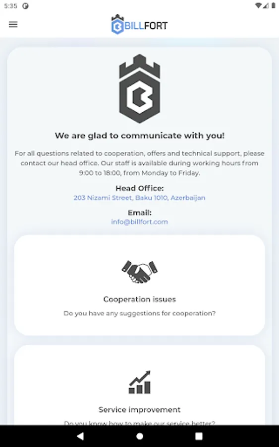 "BillFort" is a simple and convenient contactless payment system, with which you can make payments without failures and delays from anywhere in the world 24/7.