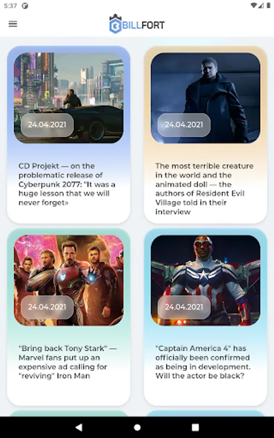 "BillFort" provides reliable protection of all payment transactions in accordance with international security standards. The user's bank card details are not stored either in the application system or in the phone and are not transferred to third parties.