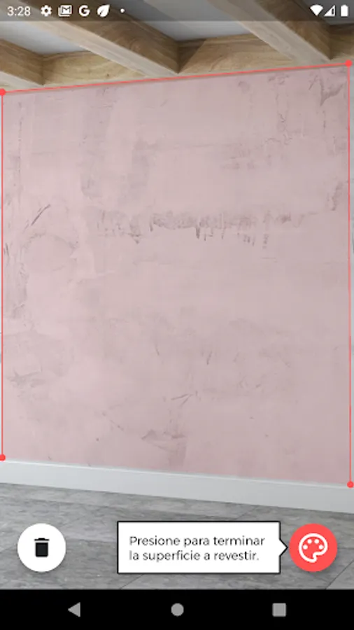 - Take a photo of a wall and touch various points on the screen to define the surface you want to cover.