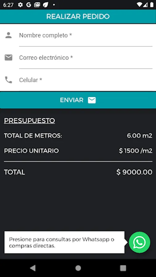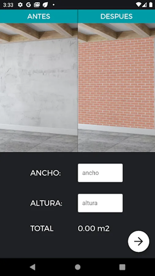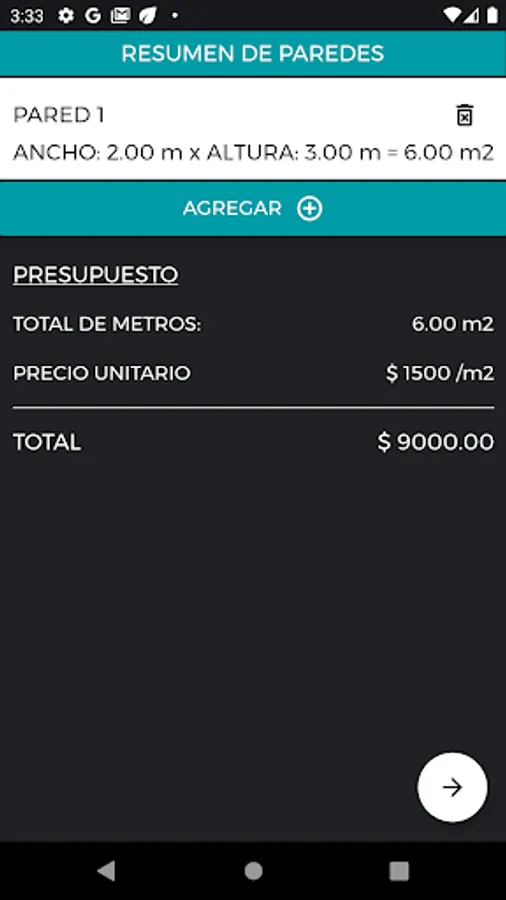 - Load the measurements of the surface to be covered and obtain the result of the total surface and the budgeted value of the work.