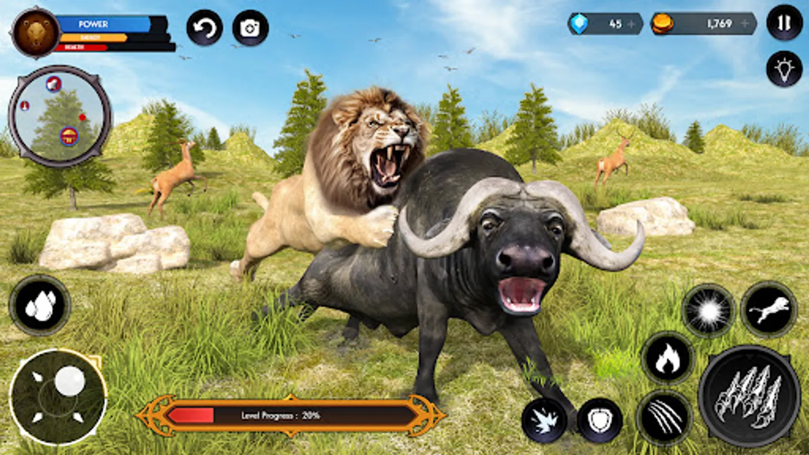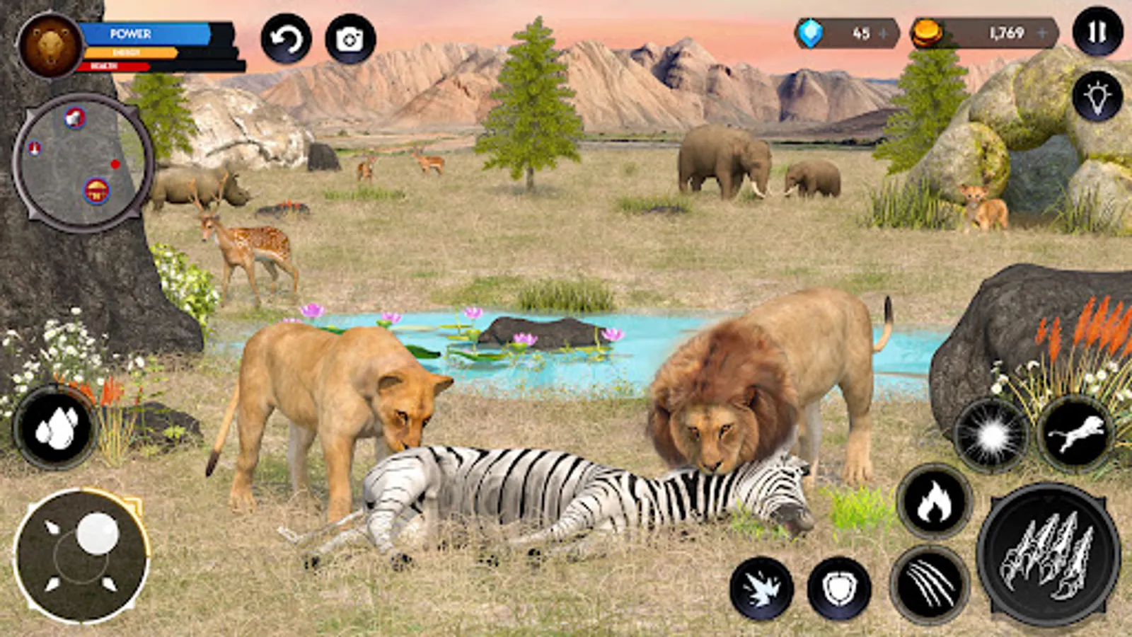 Huge and dangerous jungle is waiting to be explored in animal simulator games! Raise your own Lion Wala Family Game! Hunt lots of enemies including Fox, Elephant, Zebra, Giraffe, Rhino, Lioness and Lion, Tiger, Hippo, Rats, Rabbits, Crocodile and other jungle animals in this lion simulator 3d family game. This is the most thrilling and crazy lion simulator wala game. You will enjoy the real fun of lions in this jungle family game. Real day and night cycle with unexpected weather is waiting for you in the lion family sim lion games 3d.