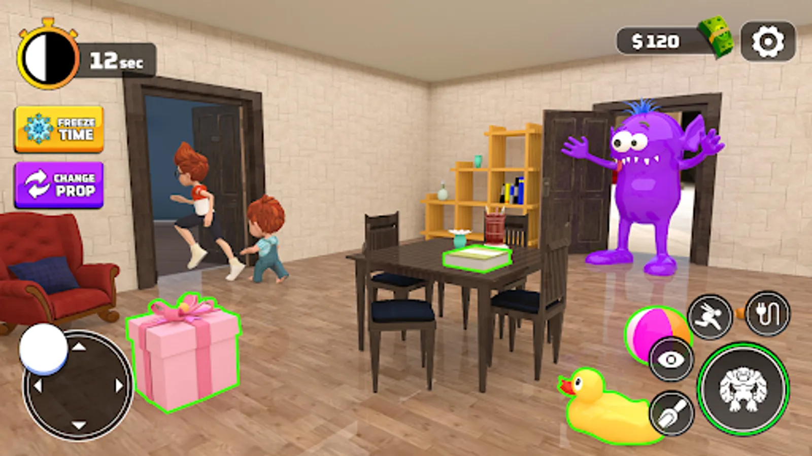 Hide and Seek Monster Run is scary yet exciting, an adventure that will put you on the edge of your seats. Each level brings a new monster with his hidden scary powers and you can only survive through hiding so pick a smart choice of choosing an appropriate prop and more importantly choosing a safe place to hide as the prop. It is a funny casual game, so launch it anywhere you want and start the scary monster adventure, multiple environments and dangerous monsters and there to test your intellect that how you choose to hide. Survive through all levels so the monster gets tired and leaves your house once and for all.
