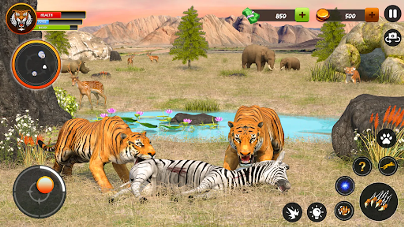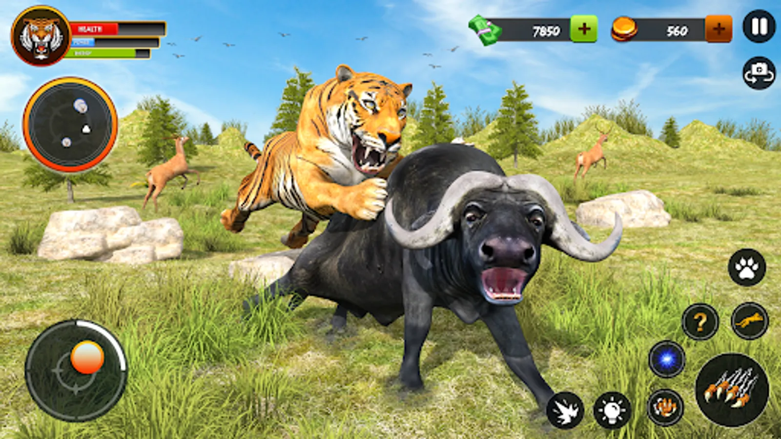 Wild Tiger Game is exclusively designed for animal games lovers. In this game you will play the role of the mighty tiger sher khan. In the jungle of Bengal sher khan is the biggest predator and hunter. Wild Tiger rules the jungle and all animals are his subjects. Live through this Adventure of Tiger, raise a family, fight with evil animals and protect your territory from hyenas and evil predators. This game will take you though the whole process of the Tigerβs life, how he managed to survive wild african and dense jungles and rainforest of bengal to reclaim the throne of the kingdom he was meant to rule, since the day of his birth.