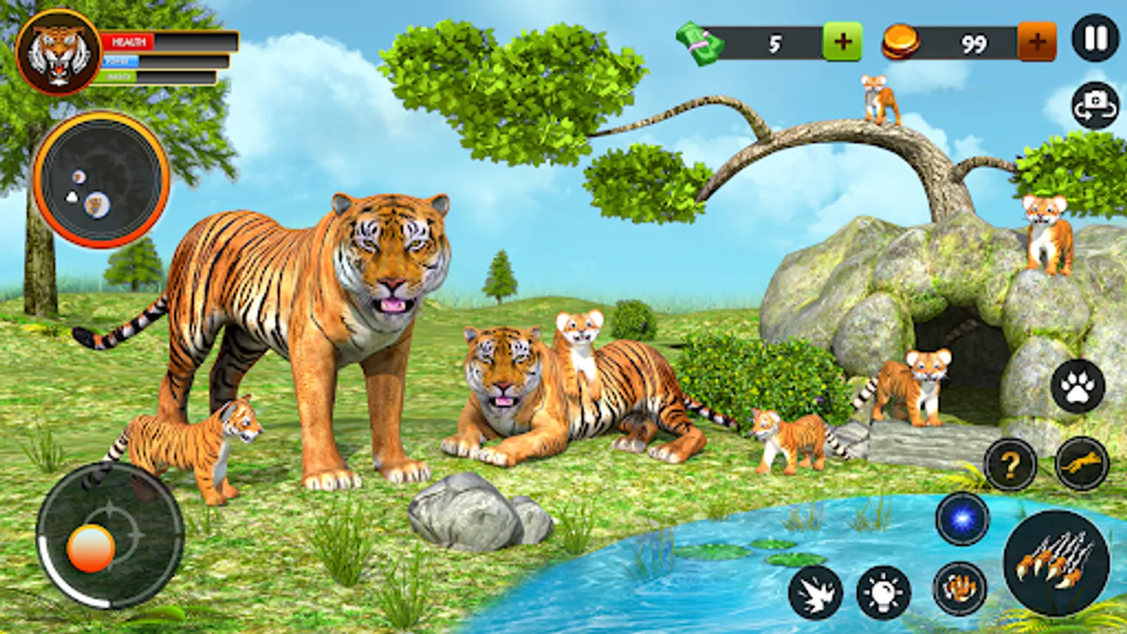 This is a Tiger Family simulator, in the wild forest you have to survive as a jungle tiger, hunt your prey and enhance the health of the tiger and remove his hunger. As a Tiger King you have to feed your family and cute Tiger cubs and Queen Tigress are waiting for your arrival so deliver them food as well. This is not an ordinary game, the realistic wild safari is an adventure like no other game has to offer, choose your prey and attack it. There are special attacks assigned and associated with your tiger so make them count and become King of Animal Games. This tiger game is exclusively designed for those who like Big Cats and Wild Lions.