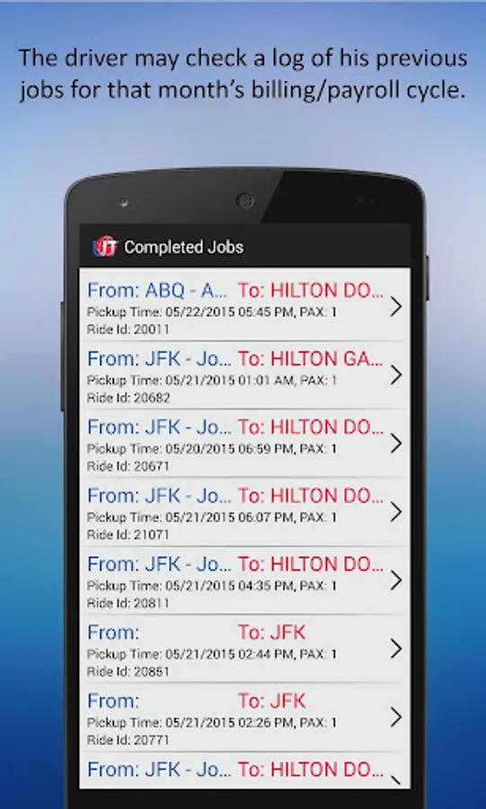 Drivers can get a new job, accept it, get directions, inform the dispatcher if the passengers have boarded the vehicle, indicate that the ride is complete, and add extra charges – all with an app. The app also helps to auto-calculate payroll based on the hours logged in every day and on the rides completed.