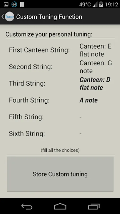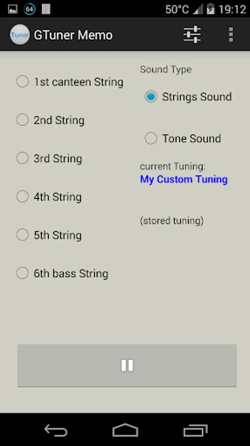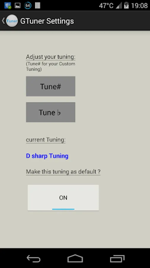 Finally, there is a defaultTuning function,that allows you to store your default tuning of your guitar and every time you open the app you tune with your guitar default.