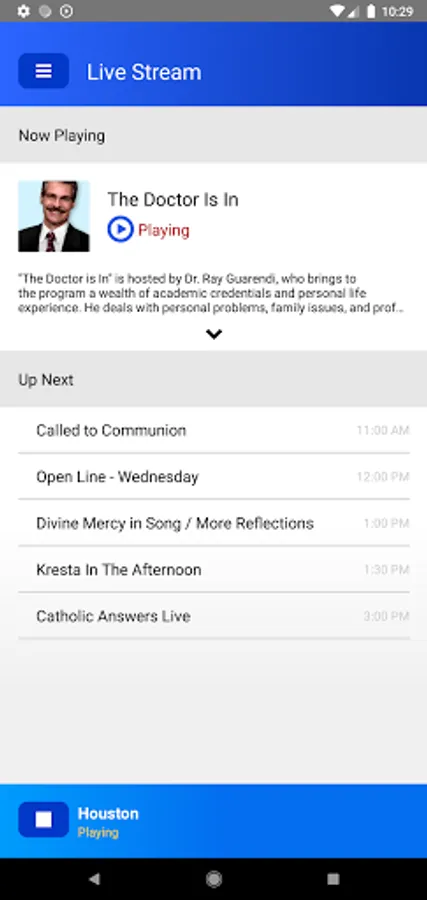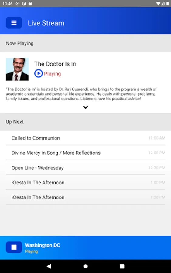 • Now Playing & Up Next: See what's playing now and swipe to see what's coming up next. Tap the info button to see contact information for the current show or call in to join the conversation!