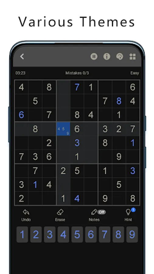 ✓ Highlight duplicates to avoid repeating numbers in a row, column, and block.