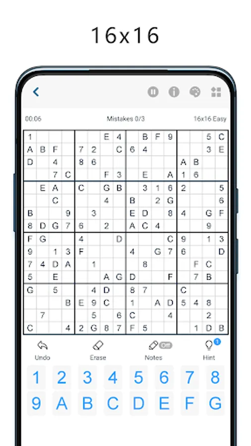 ✓ There are three types of Sudoku puzzles: 6x6, 9x9 and 16x16, suitable for both beginner and advanced players.