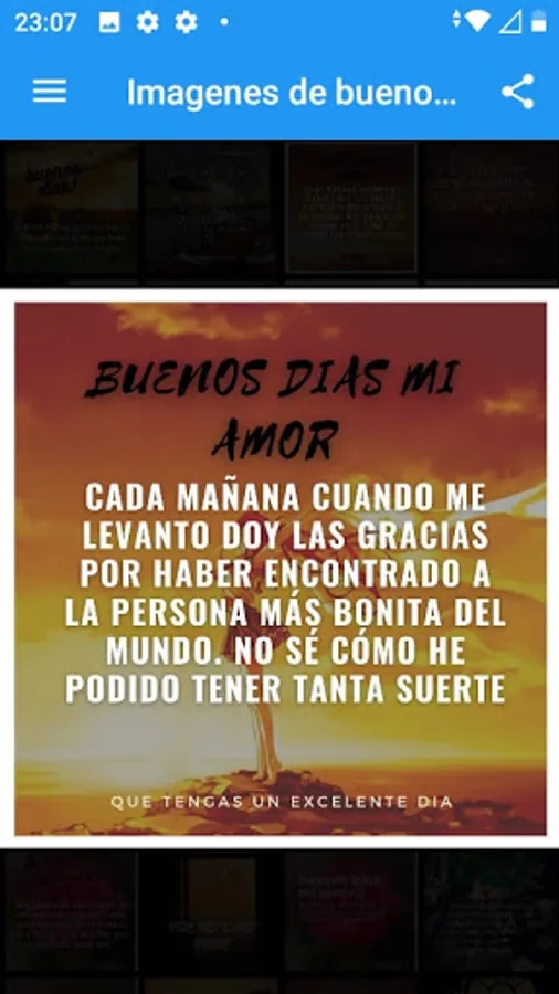 With this application you can share images with very beautiful phrases of good morning which you can dedicate to your family and loved ones, in all your social networks.