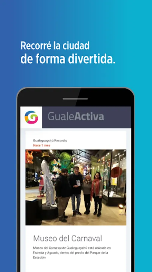 GualeActiva is a social platform designed to connect neighbors and neighbors of the city of Gualeguaychú and tourists, with everything that refers to the city, that is, share information, news and carry out all kinds of procedures virtually from