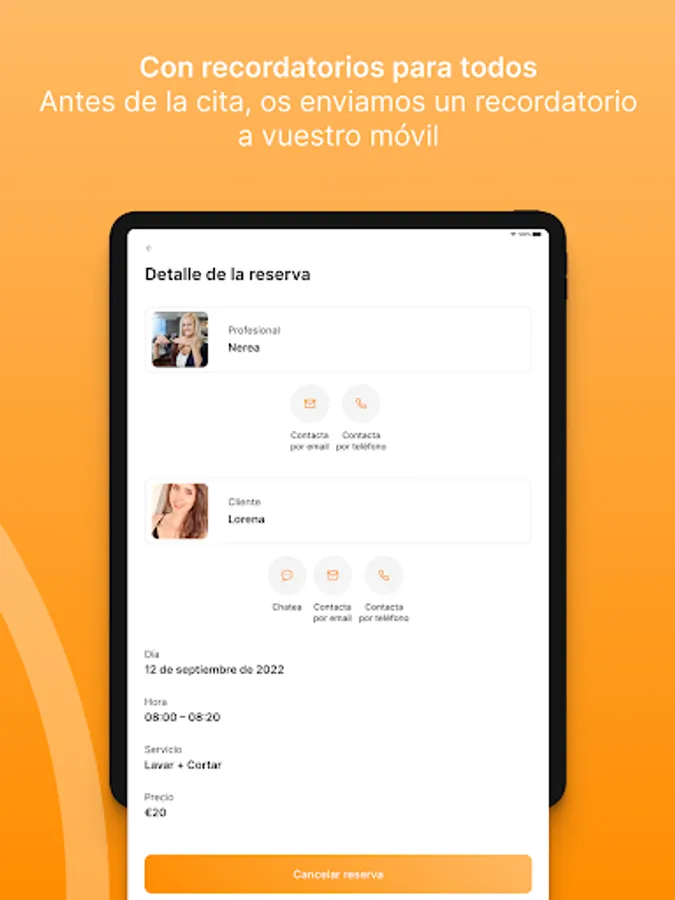 Surely this situation is familiar to you: you are in the middle of a service and the phone rings. There is no one else in the center and you must take the call. You interrupt the service, lose concentration, neglect your client for a moment... this is history! With Guappi, all reservation and communication procedures with your clients are carried out through the app. Easy, comfortable, fast.