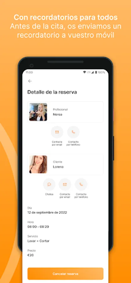 In the app you will be able to see your reservations and on the day of the appointment you will receive a reminder.
