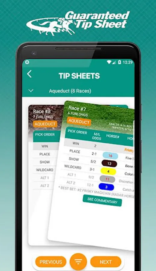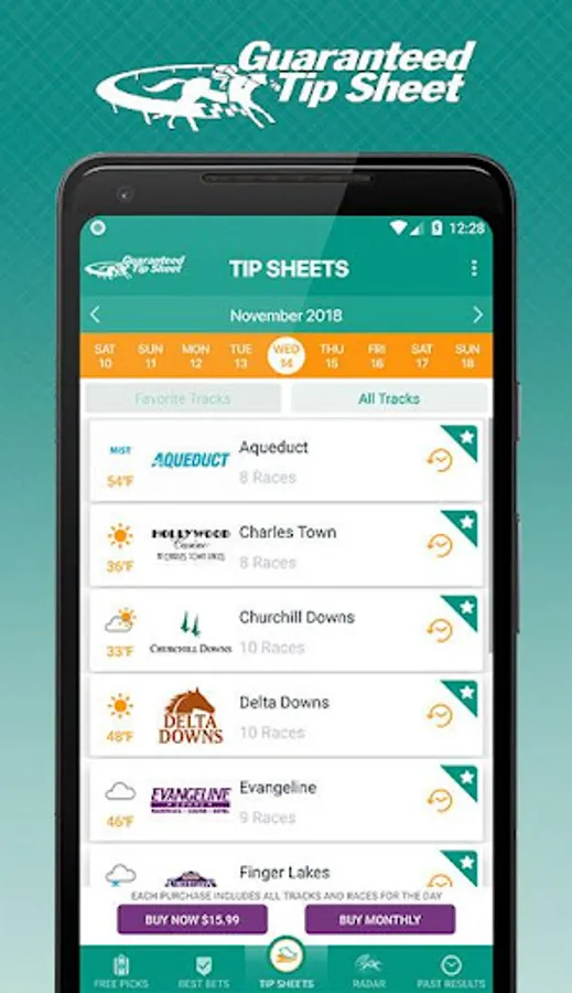 Guaranteed Tip Sheet provides horse racing tips and picks for most North American thoroughbred and quarterhorse racetracks. Through our app you can view our picks for each race, see our daily BEST BETS and view our entire past history of tipsheets and results.