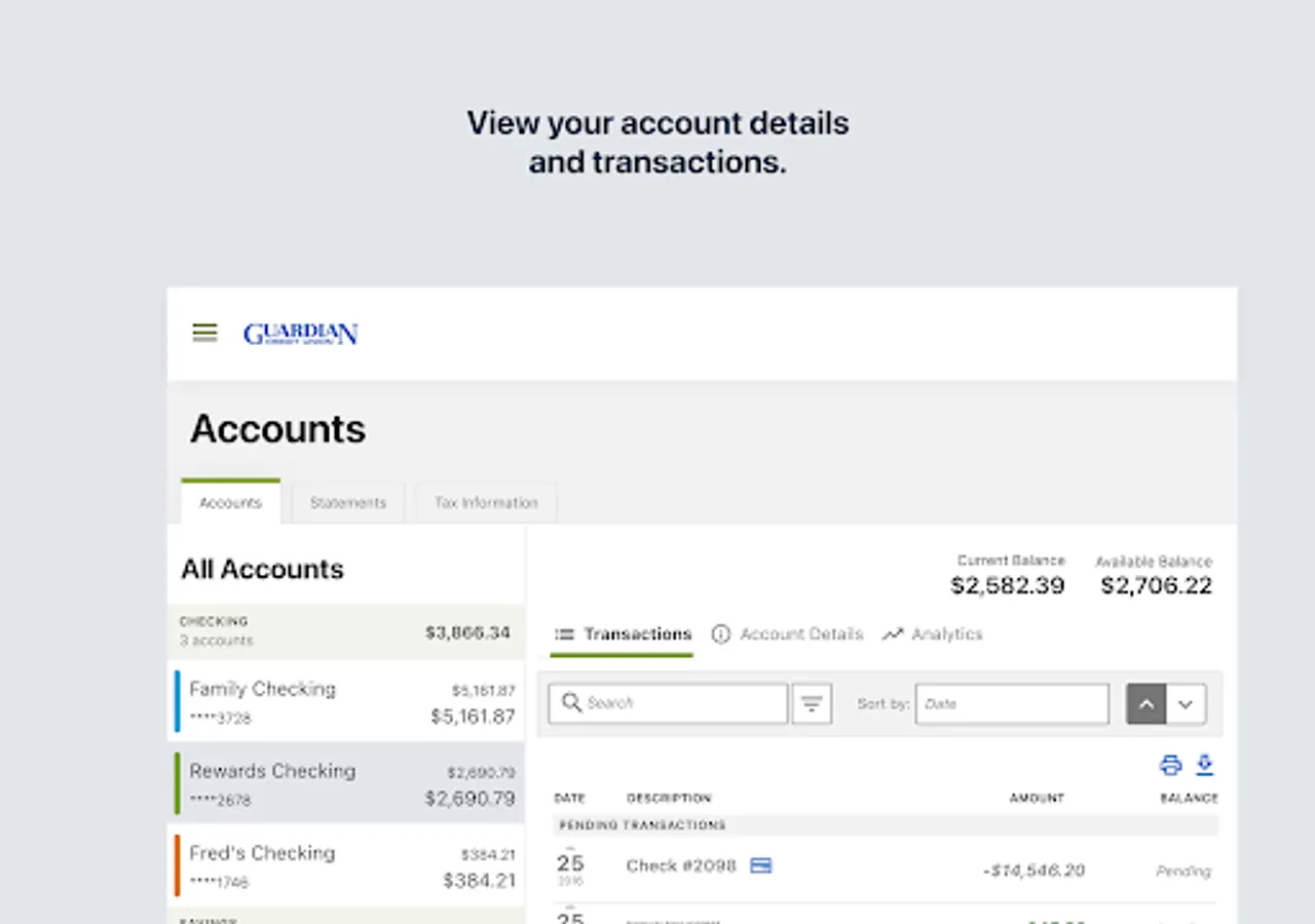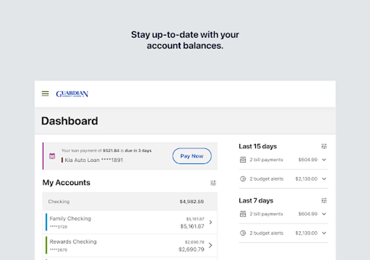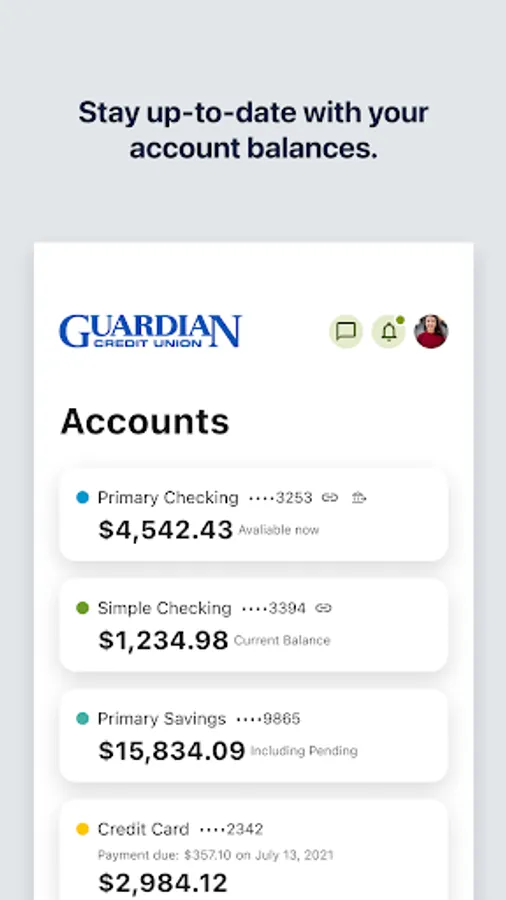 Guardian Credit Union Mobile Banking allows convenient account access and money management anytime, anywhere.