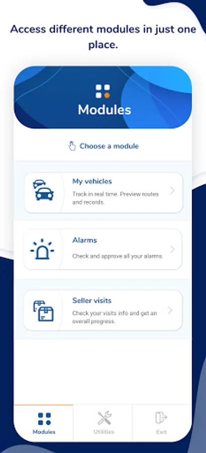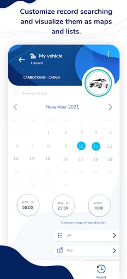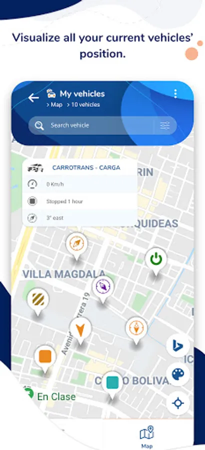- Access all your vehicles or fleet and visualize them on lists and maps.