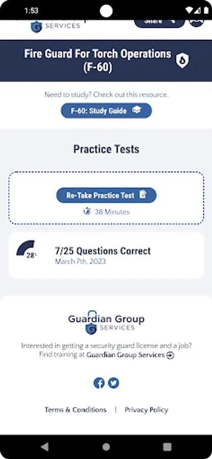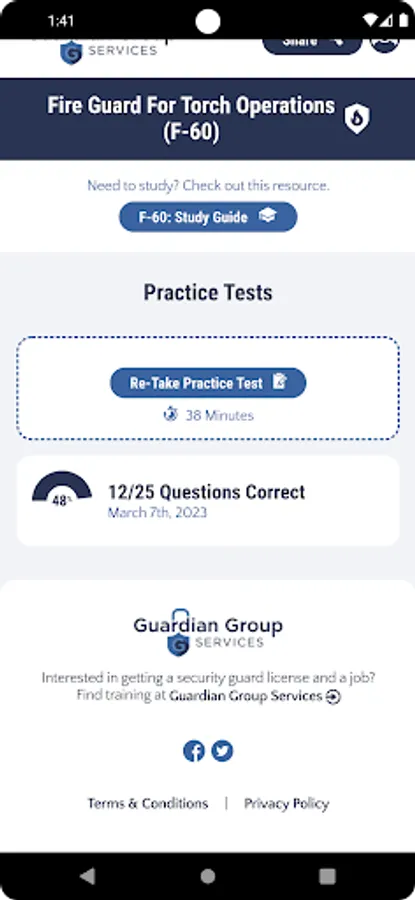 The Fire Guard app has a link to the official FDNY study material for the F-60 exam and it will also keep a record of your test history so you can go back and see what you got right and what you got wrong.