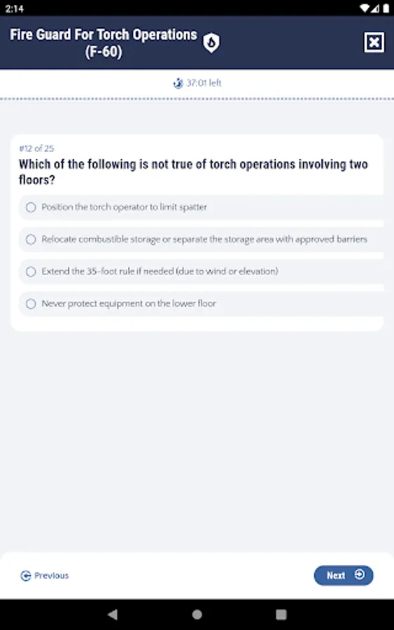 Our instructors have helped thousands of clients prepare for and pass the F-60 exam. We have created a bank of 100 questions that are similar in design and difficulty to the ones you will encounter when you take the actual test at the Fire Department of New York. Much like the FDNY certificate of fitness exam, this app will randomly generate 25 multiple choice questions each time you take the practice test and will allow you 38 minutes to complete the test. You can take it as many times as you like.