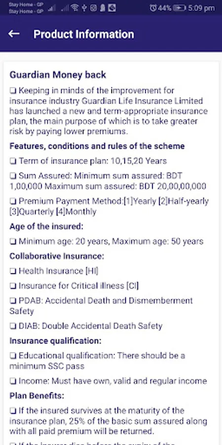MyGuardian, the android app for Guardian Life Insurance LTD, users can avail the following features: