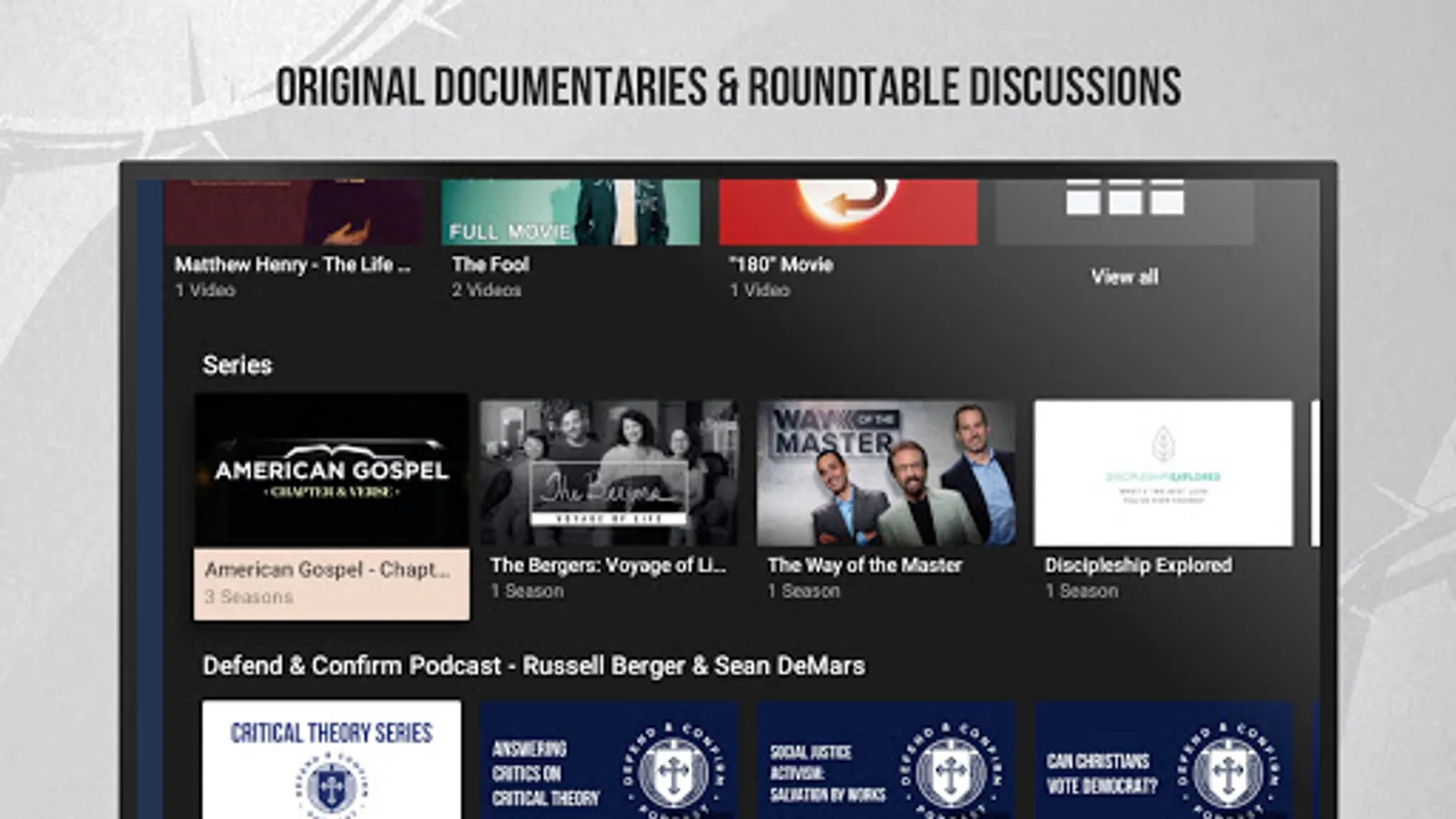 Subscribers have access to all "American Gospel" films, in both standard and episodic form, complete with roundtable discussions. Also included are similar, carefully-curated documentaries and docu-series that help Christians discern truth from error.