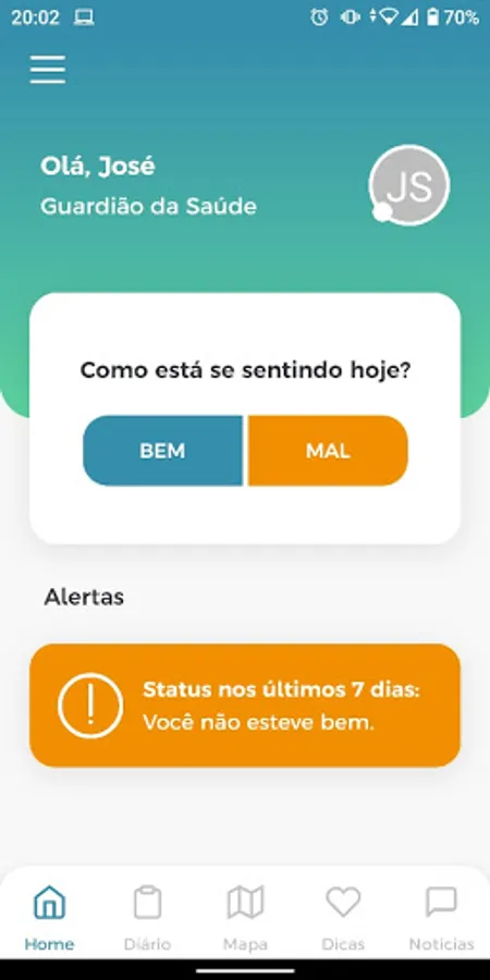 In the Guardians of Health app, you tell us how you feel and we'll tell you what to do.