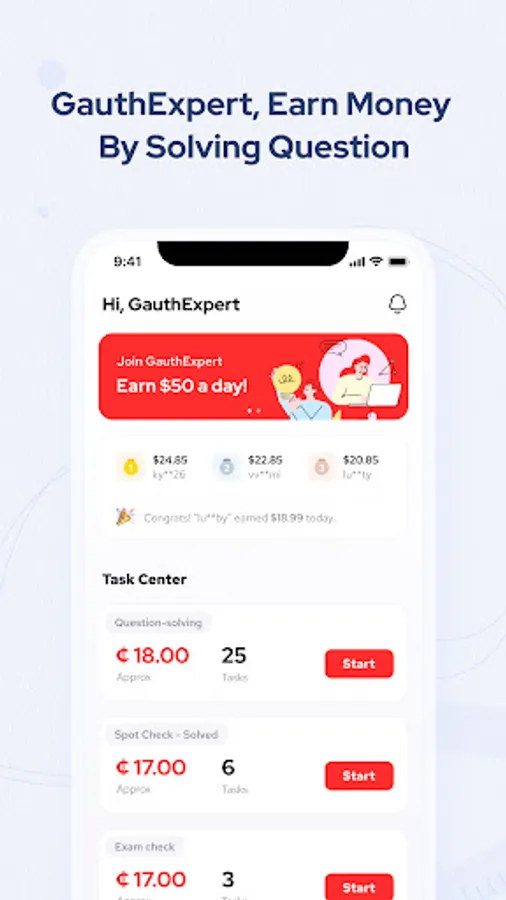GauthExpert is an excellent app for those who are confident in mathematics. Tutors and experts who have passed registration and verification process can select a problem uploaded in real-time by students all over the world. You can make money anytime, anywhere with your mobile phone. Different types of questions correspond to different remunerations, and you can withdraw money monthly.