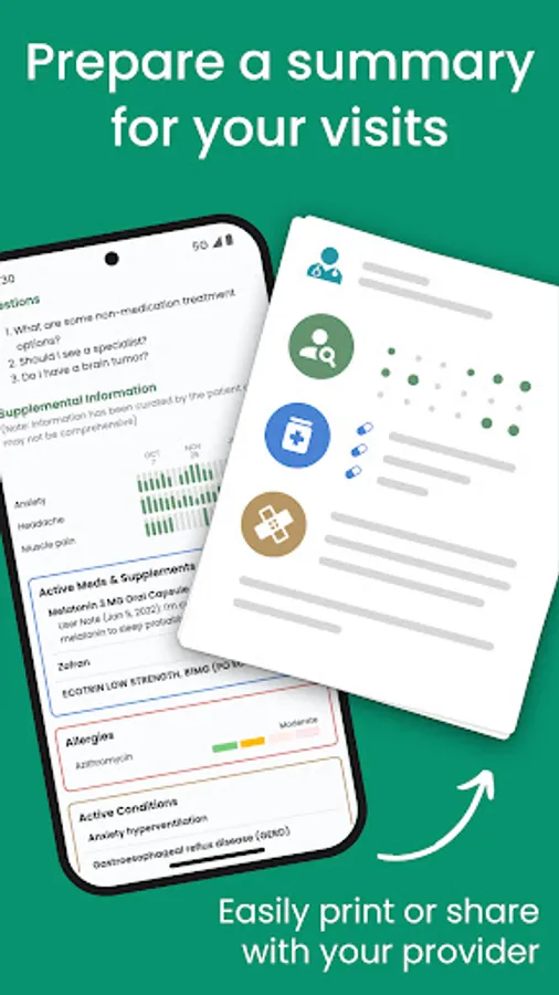 ✔️ PREPARE FOR DOCTOR’S VISITS: Pull in logging and medical information to create a customized summary for your provider of your overall health, symptoms, meds, and conditions. Add requests, questions, and assessments you may have leading up to your appointment so you remember it all.