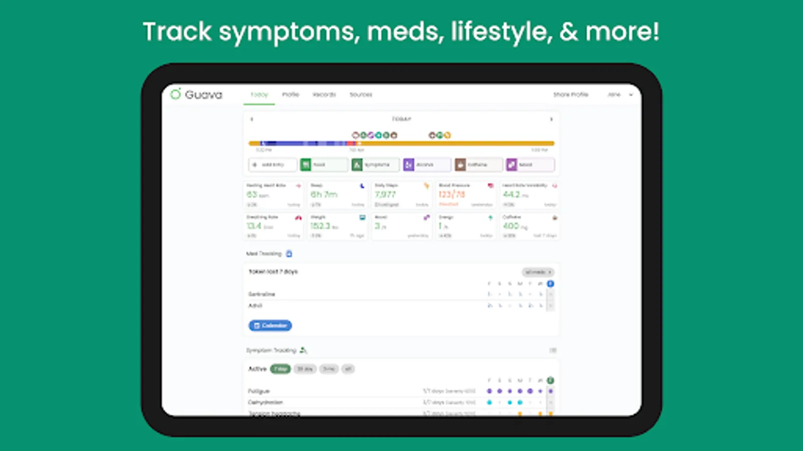 Guava is designed to help empower people to manage their health and chronic illnesses. Healthcare can be overwhelming. Whether you're trying to find a diagnosis, get a chronic condition under control, or manage your day-to-day health, Guava has the tools to help ease the burden.