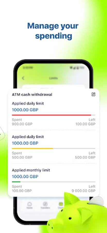 ● Stay up-to-date with SMS updates and push notifications that provide you with real-time information on your expenditures