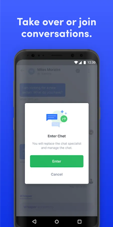 - Send whisper messages to Gubagoo chat specialists and your staff
