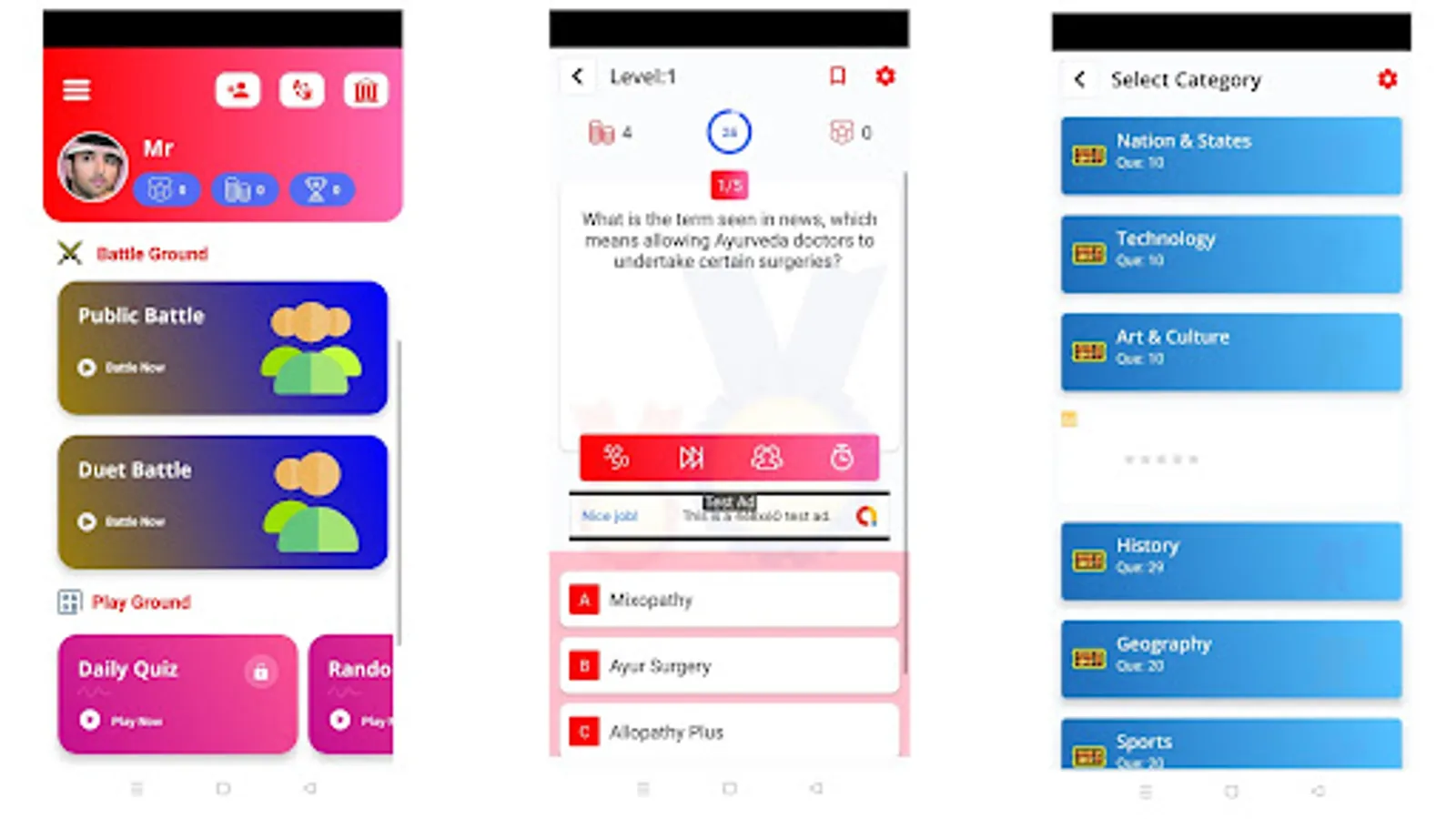 At this time, battle games are being liked a lot in our country, so we have also put a battle option in it, where you fight on the basis of your knowledge and we have named it Battle Ground. In the battle ground, you have two option Public and Duet ; In Public Battle create a battle room, where anyone can join your room and fight, in which a large number of students can fight with each other. Apart from this, you can do Duet Battle where only 2 people fight among themselves.