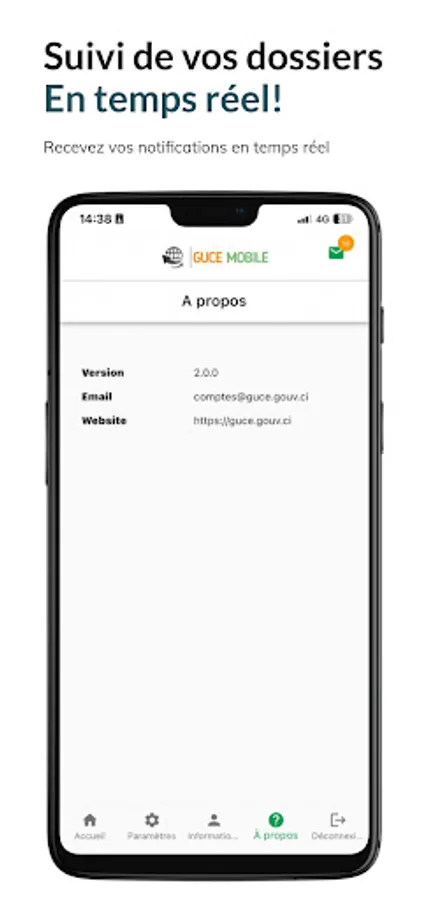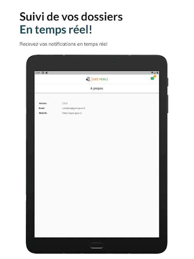 This mobile application allows all users of the GUCE platform (https://guce.gouv.ci) to monitor their commercial transactions in real time using their usual site access accounts.