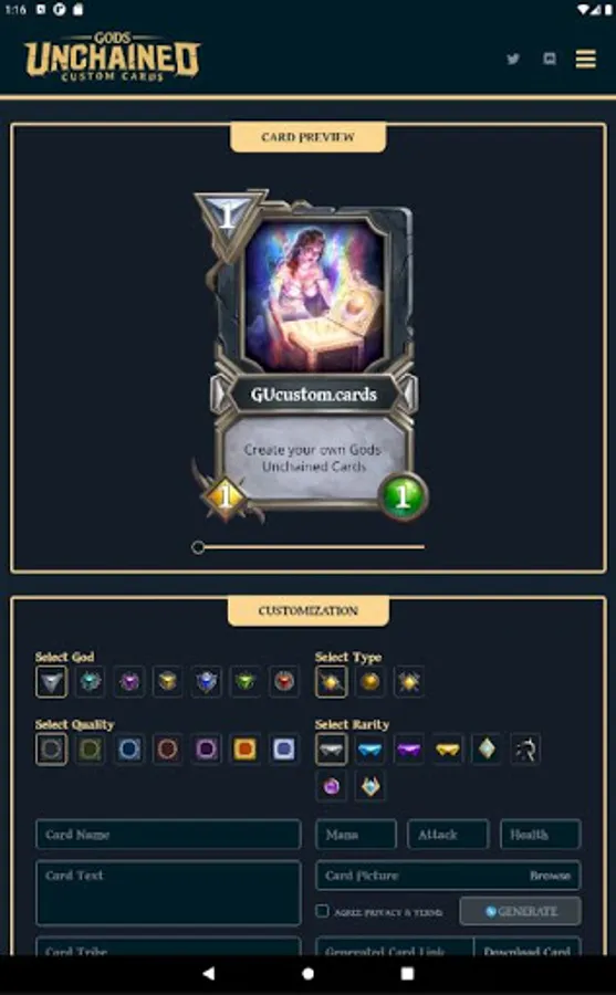 Generate your own Gods Unchained style cards!