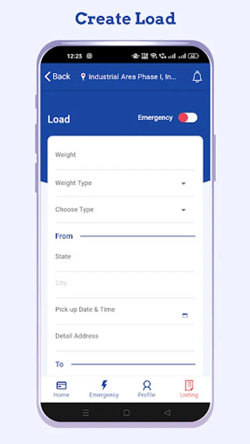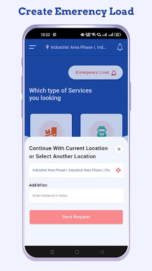 Or if you have an emergency and you do not want to go on load, then you can use this feature. Just click on the emergency option and you will be connected with the other vacant freight available within your designated area. Gudguru will give you an advanced option in which the user will be asked how many miles he wants to send his notification to other truckers using this app.