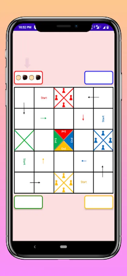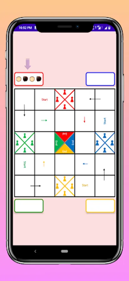 Like Ludo game Player must move all his four token to destination zone which is located at the center of the grid before other players do.