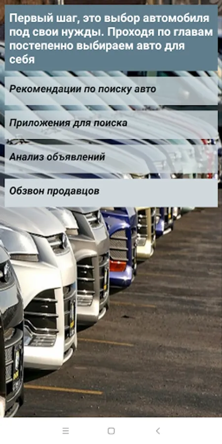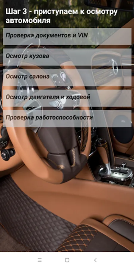 Search for a car, buying a car, inspecting a car, body, interior, engine, chassis, car performance
