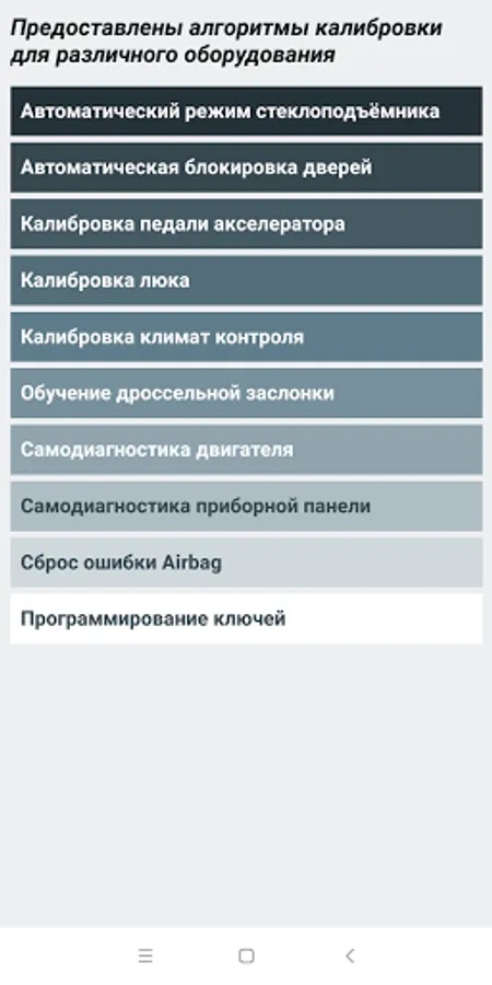 - section "reference materials" - brief information on the selection of wheels and car diagnostics