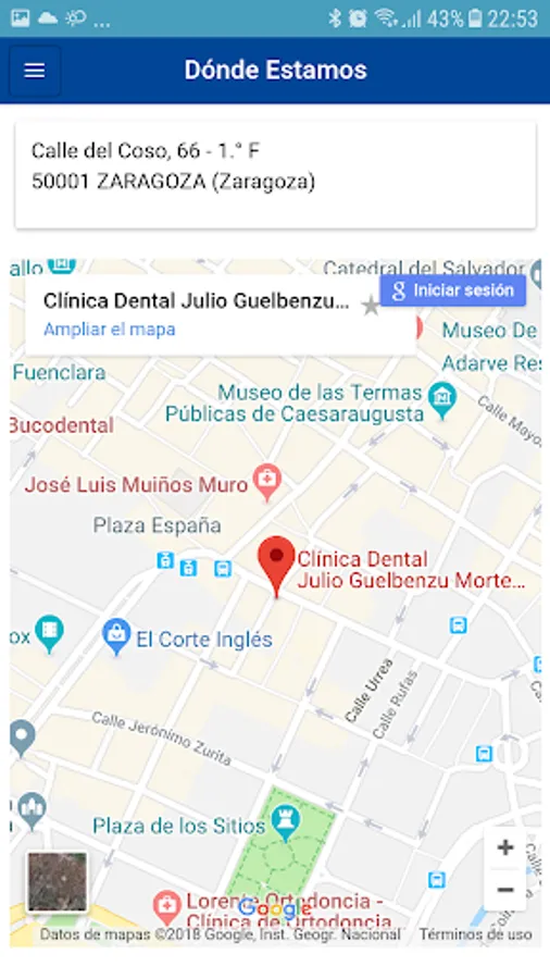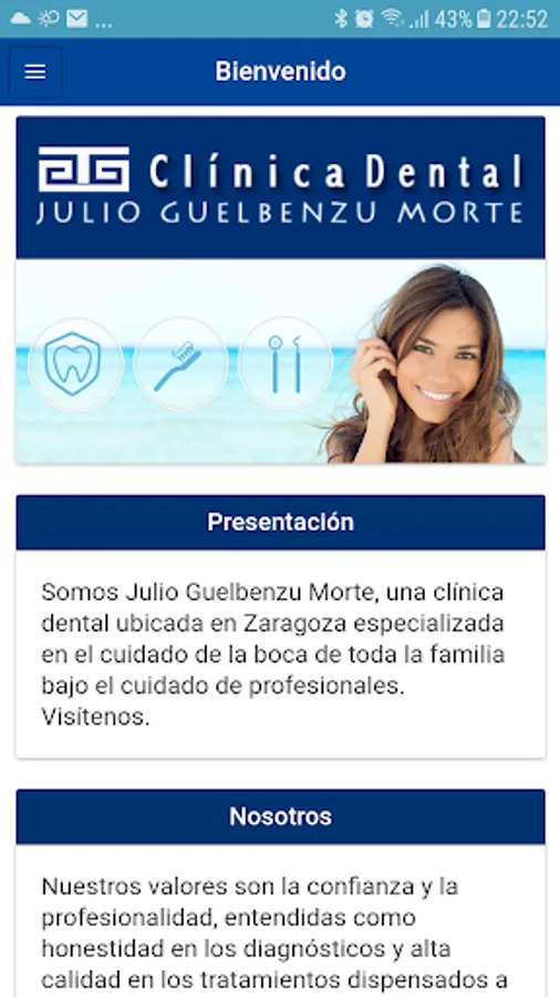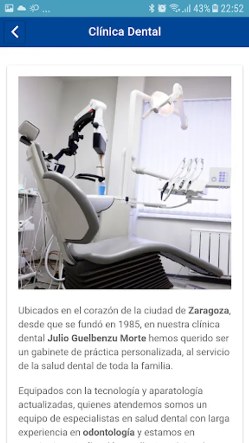 Application of the dental clinic in July Guelbenzu Morte. It includes real-time information for the delay in waiting room. It also has general information about the clinic, contact form and map.