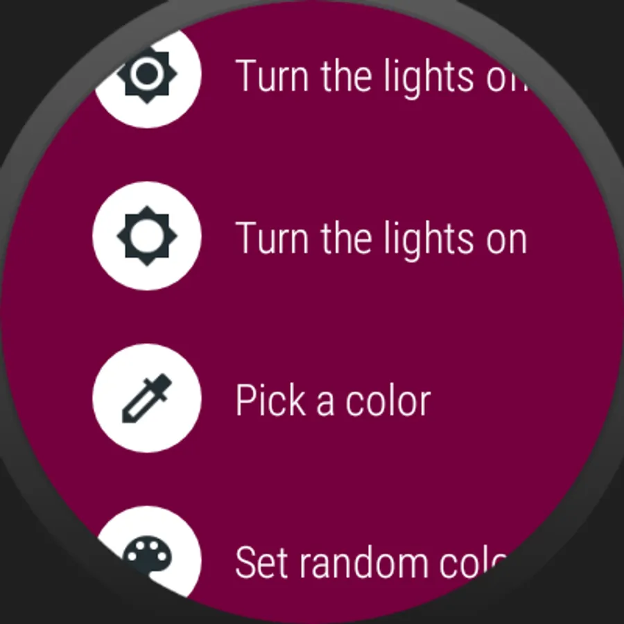 - Pick a color to set to all lights or room's lights