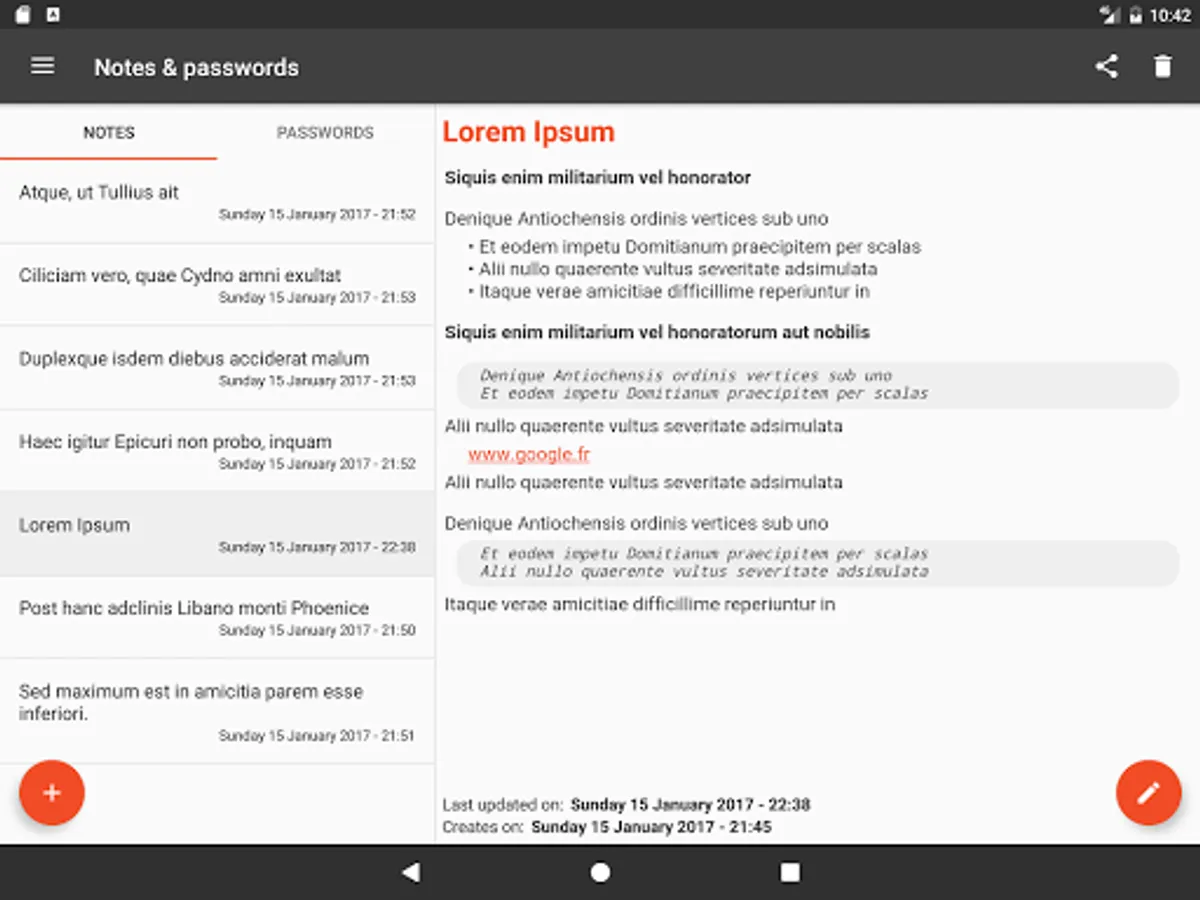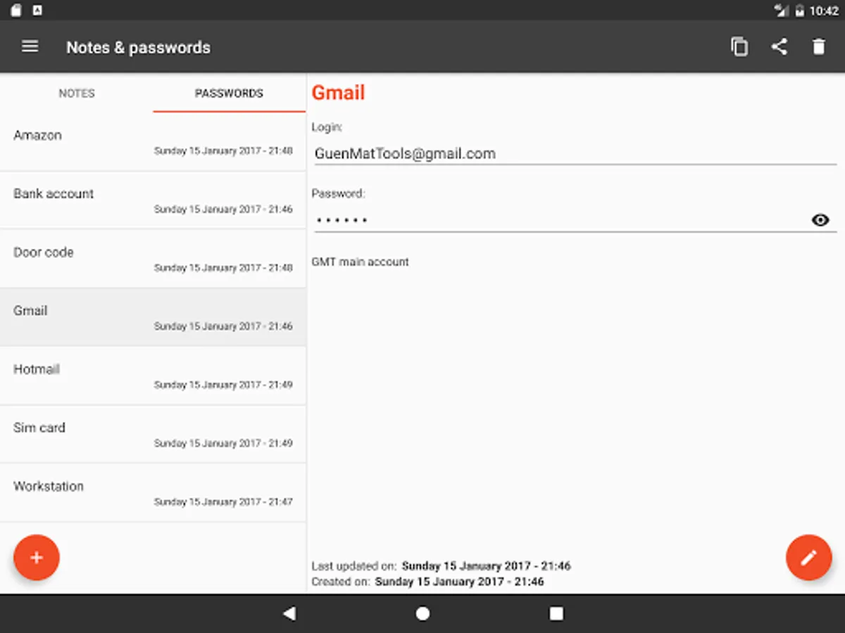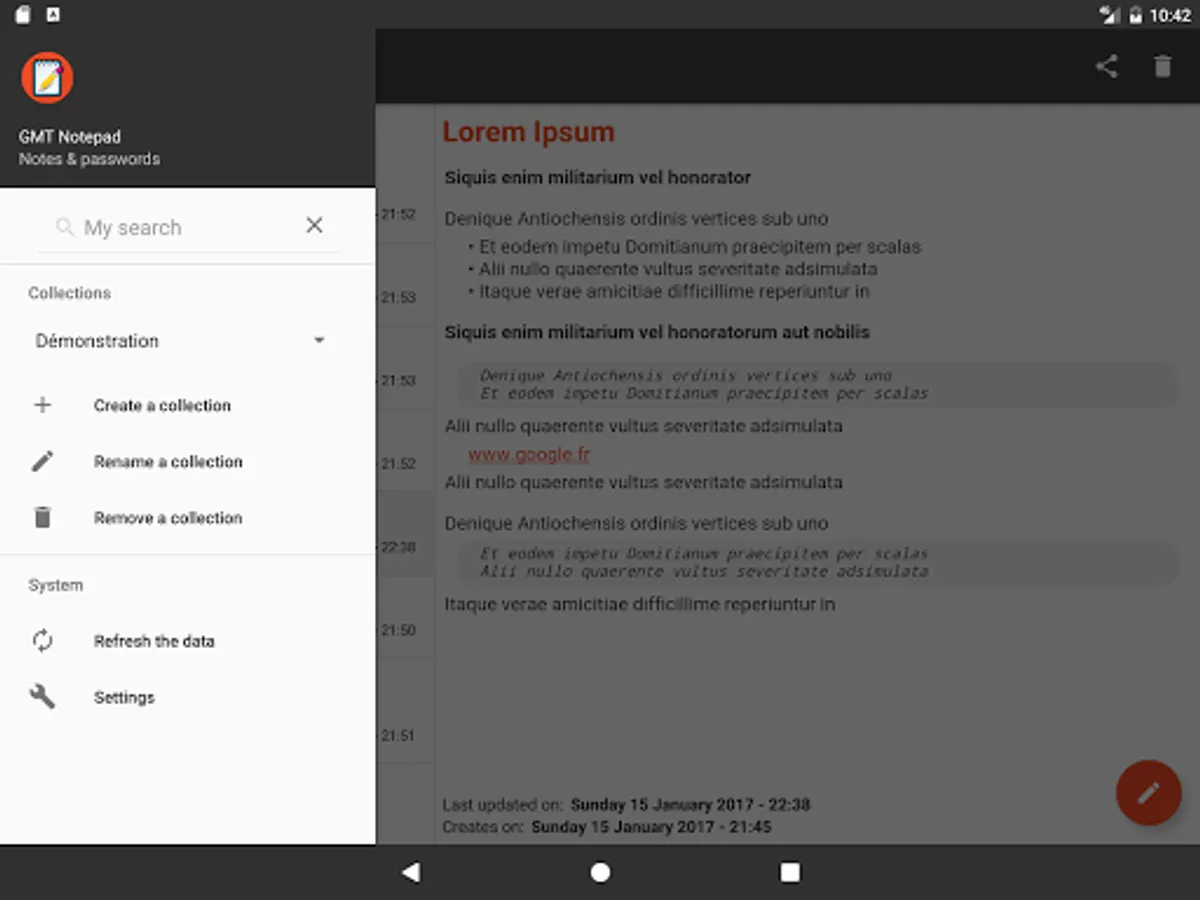 - Creation of notes and passwords collections allowing to manage various profiles (work, personal ...)
