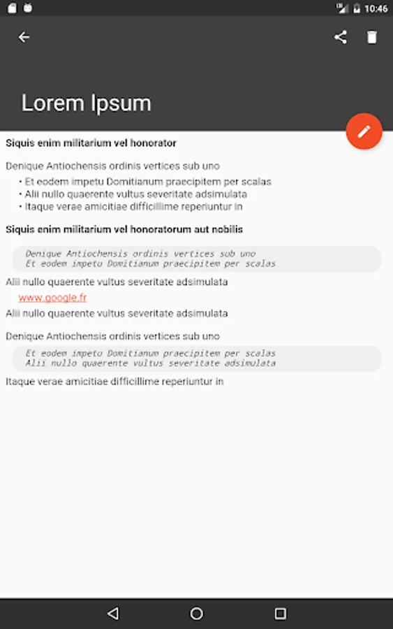 - Stores, adds or edits notes (with minimalist but very easy-to-use text formatting)