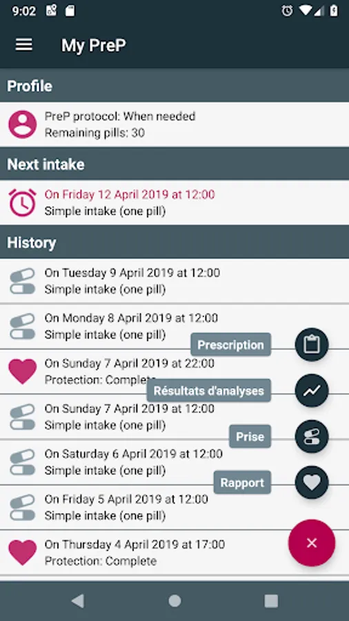 - Receive advices on the followed protocol (time for PrEP intake, number of pills to take, how many intakes after an intercourse, whether to start a cycle with a double take or a single take ...)