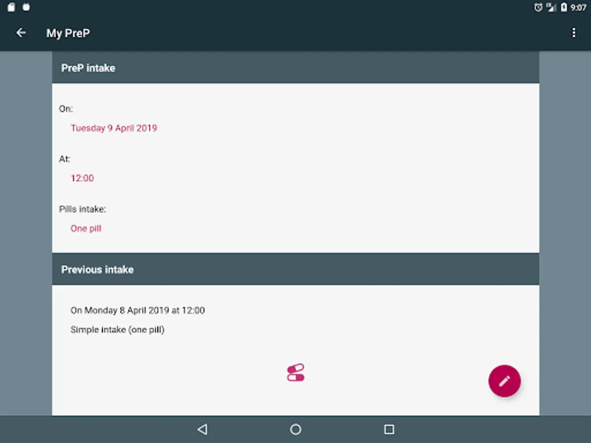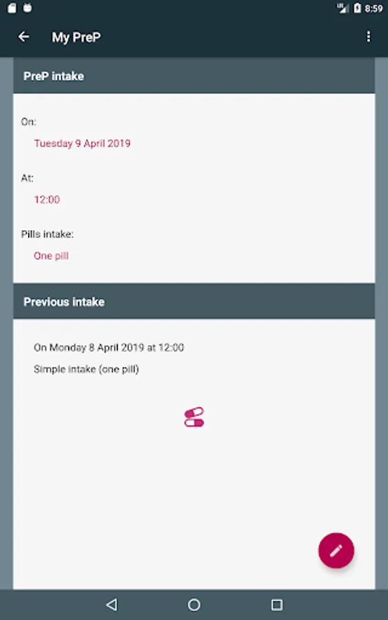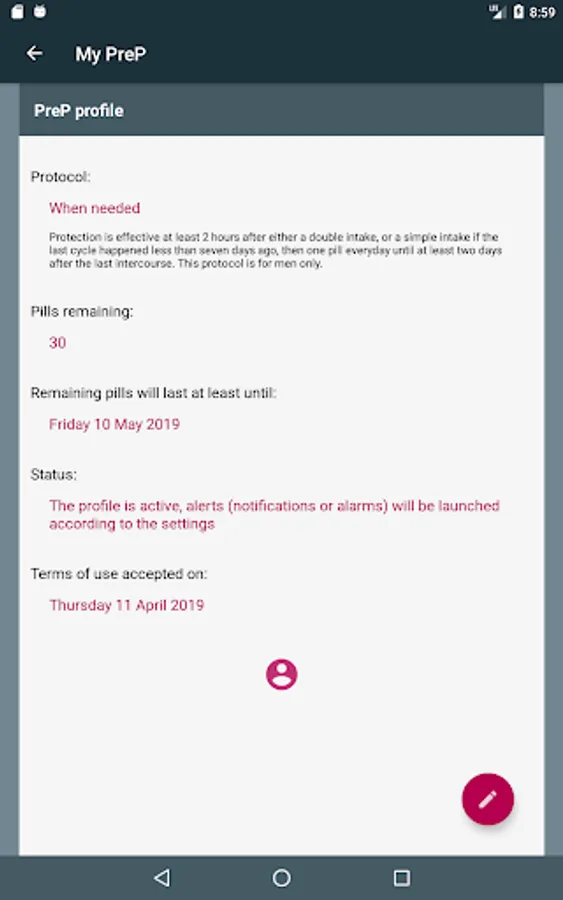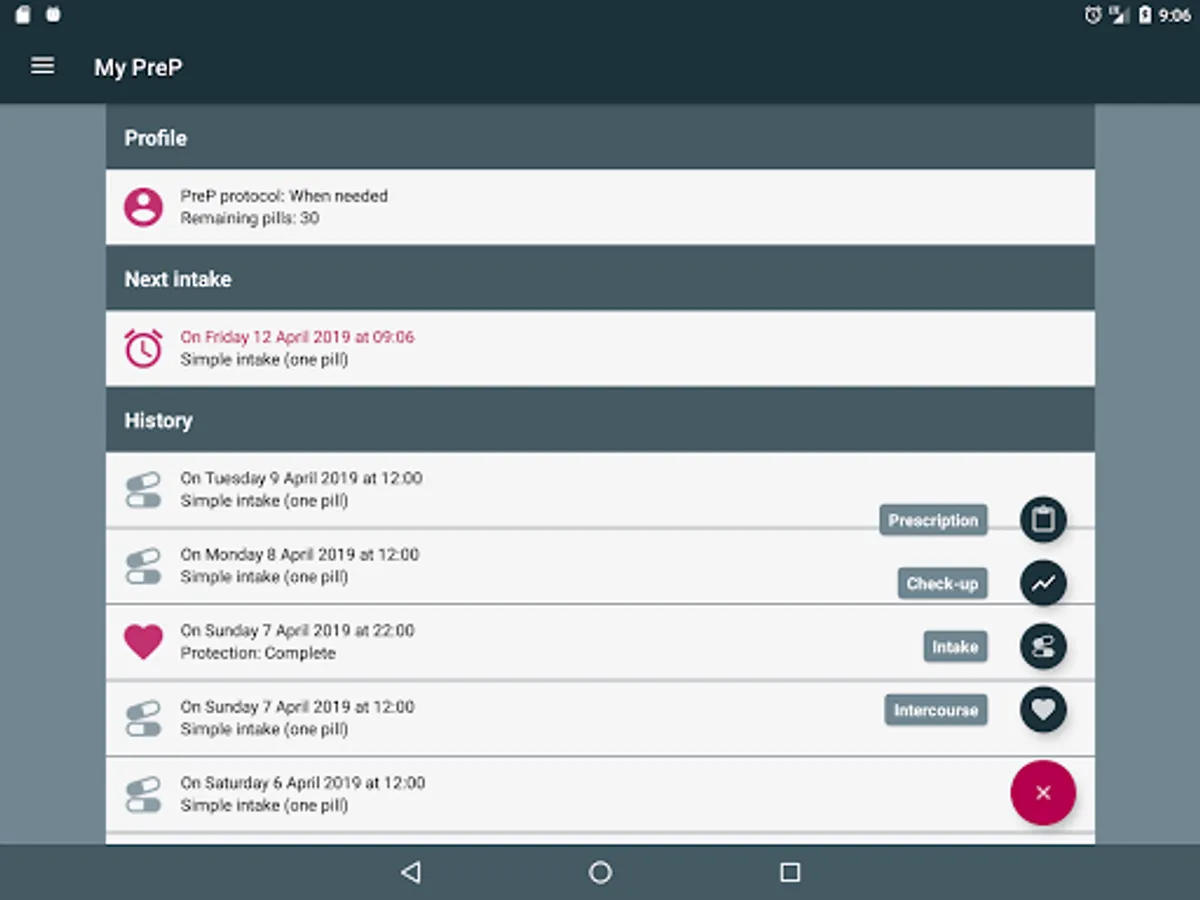 This application will help you following you preventive PrEP treatment (pre-exposure prophylaxis), by assisting you with your intakes and activating alarms and notifications when it is time to take your pill.