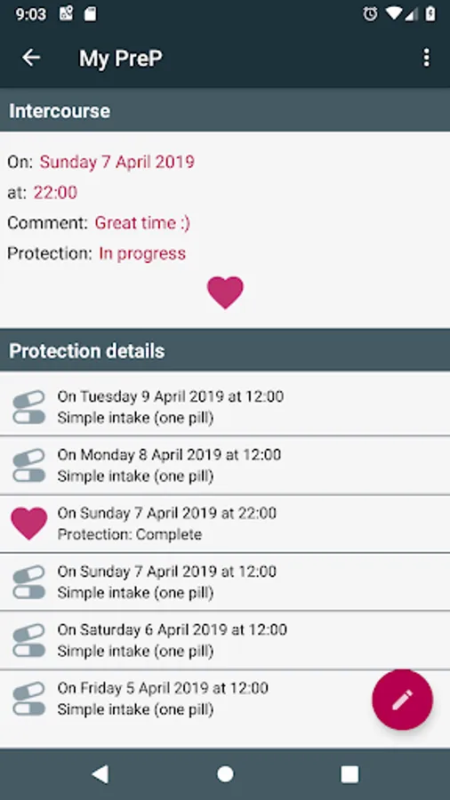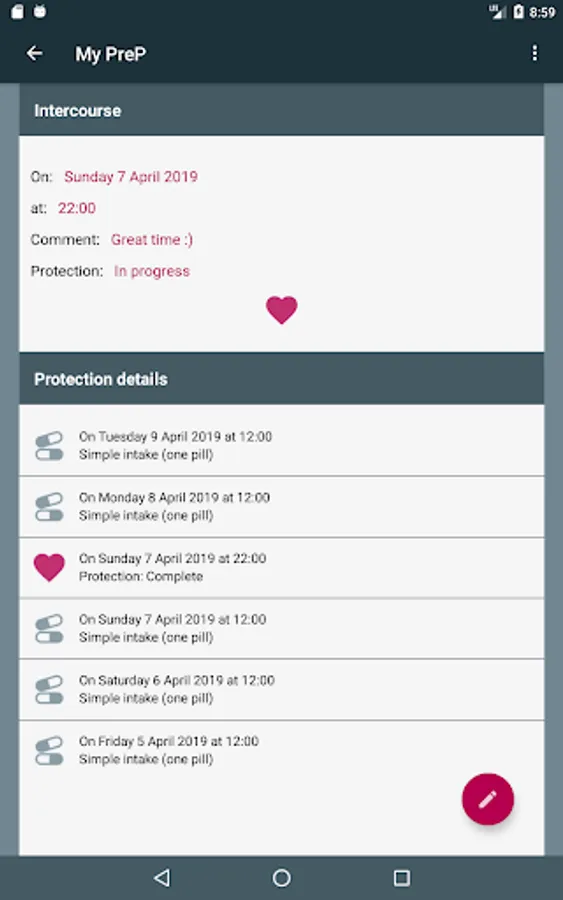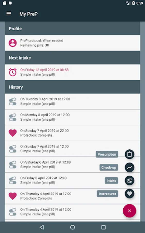 - Record the time of PrEP intakes or intercourse very easily via the application, notifications or, if necessary, a smartwatch.