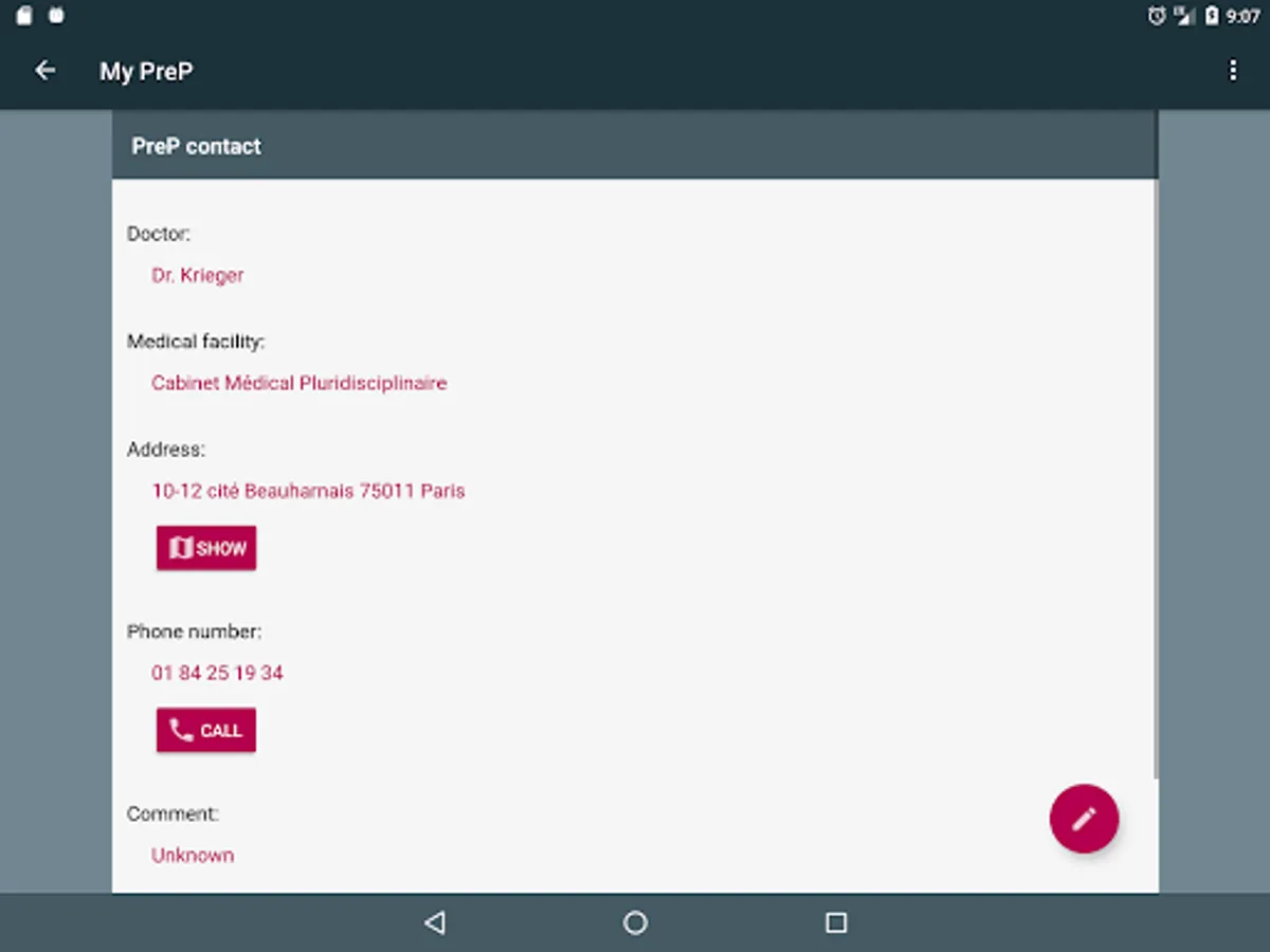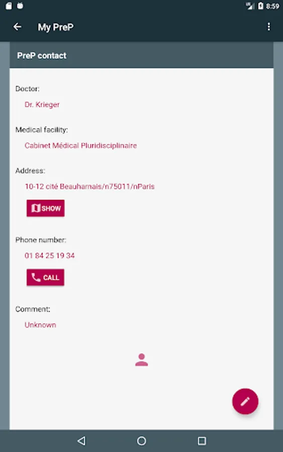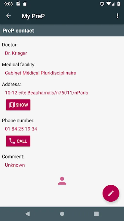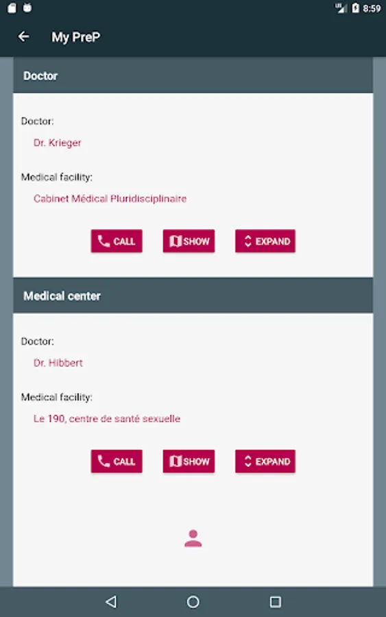 - Enter contacts (doctors, medical centers) for direct access if an intercourse is not protected or if it is time to request a quarterly consultation