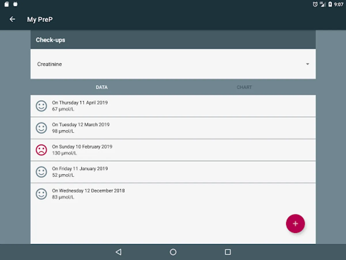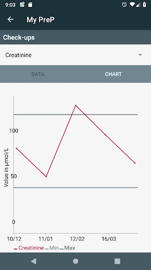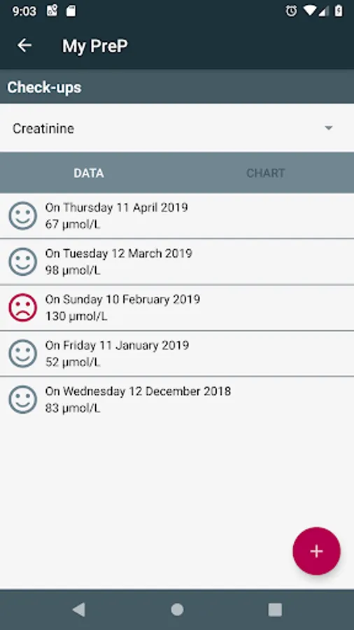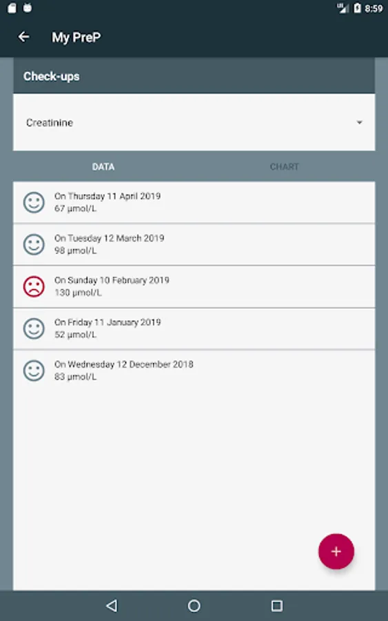 - Enter the results of medical examinations (creatinine,...) to be able to follow the evolution over time