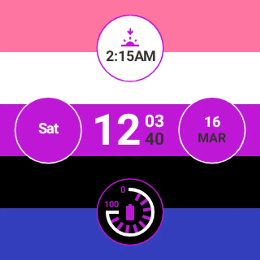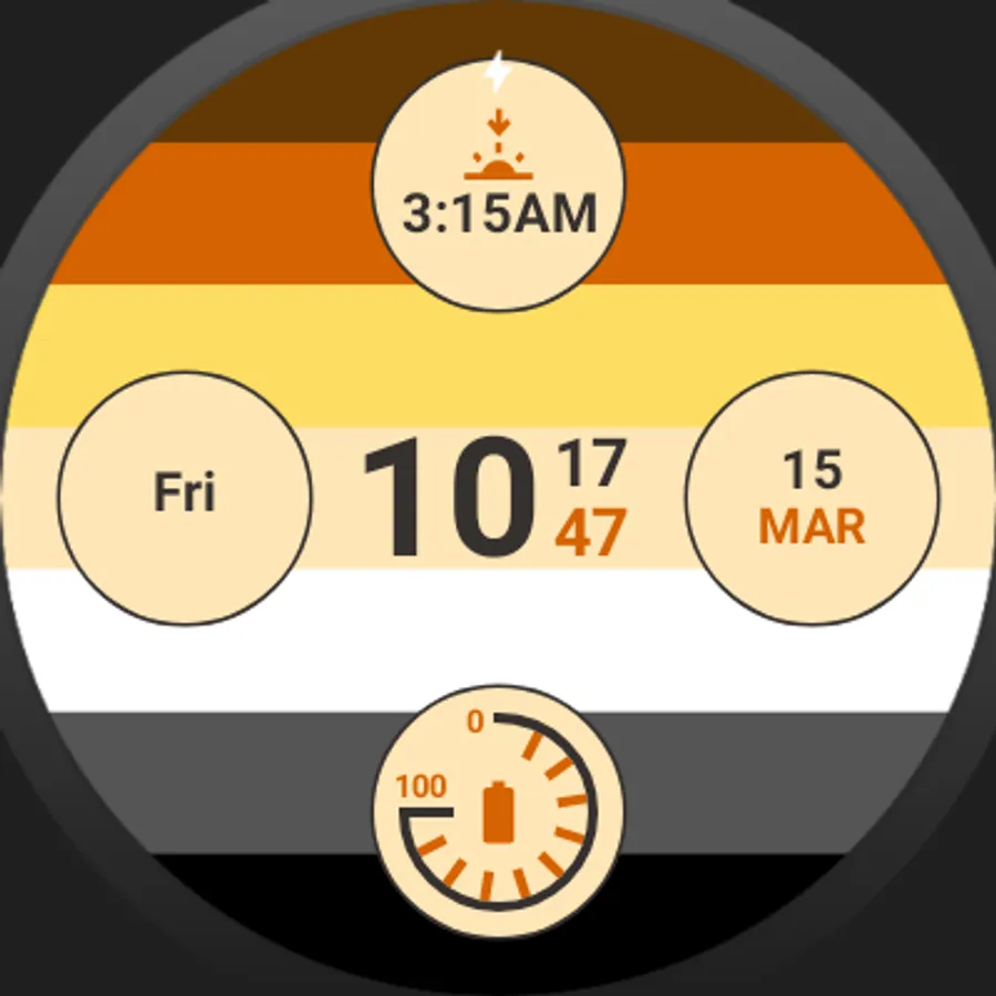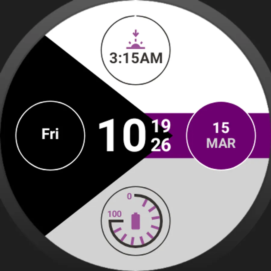 Totally free watchface, with a very low power consumption with low bettery optimisation, adapted for square, chin and round watches, with android wear os complications.