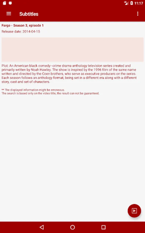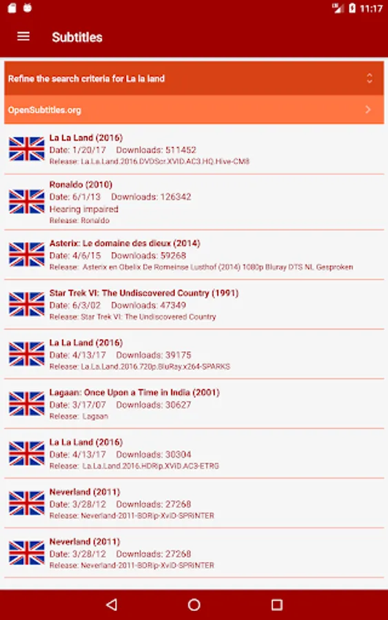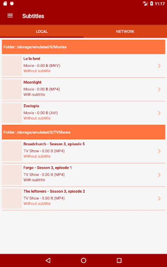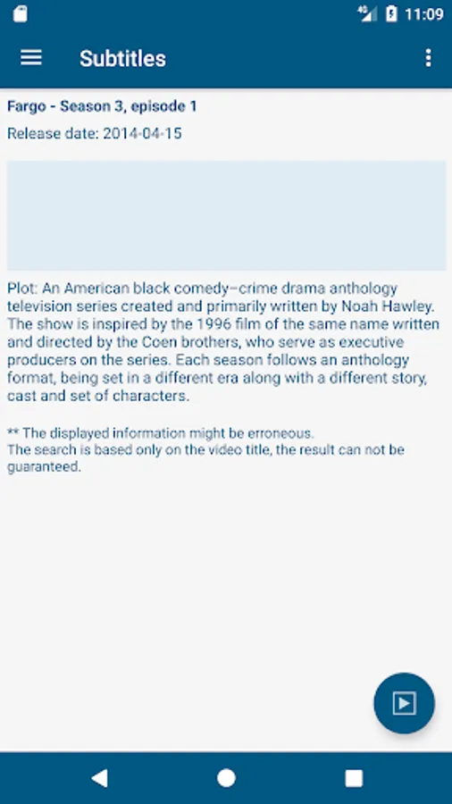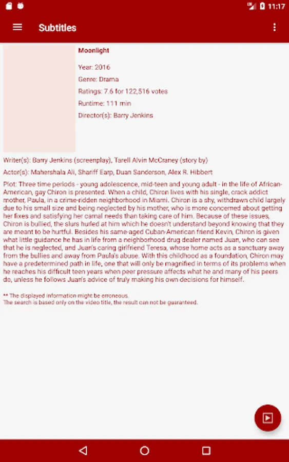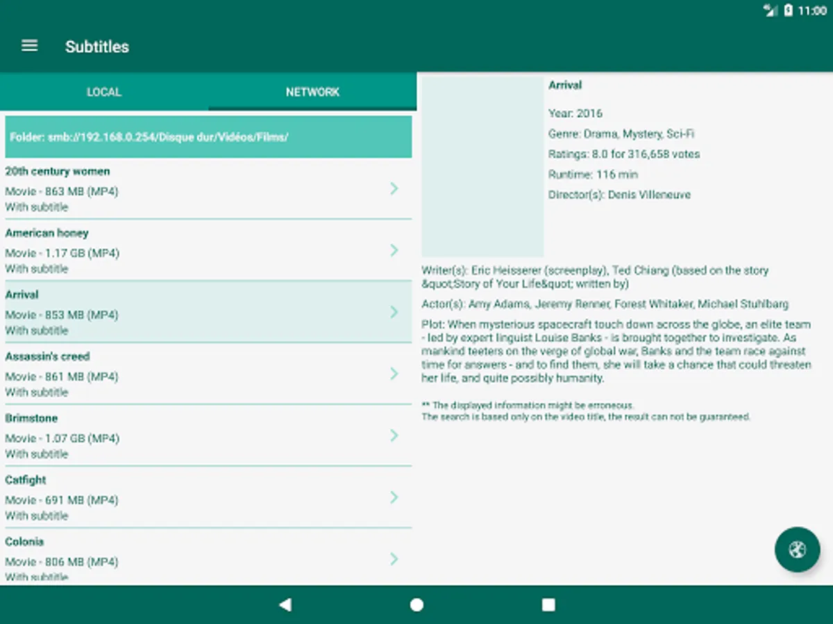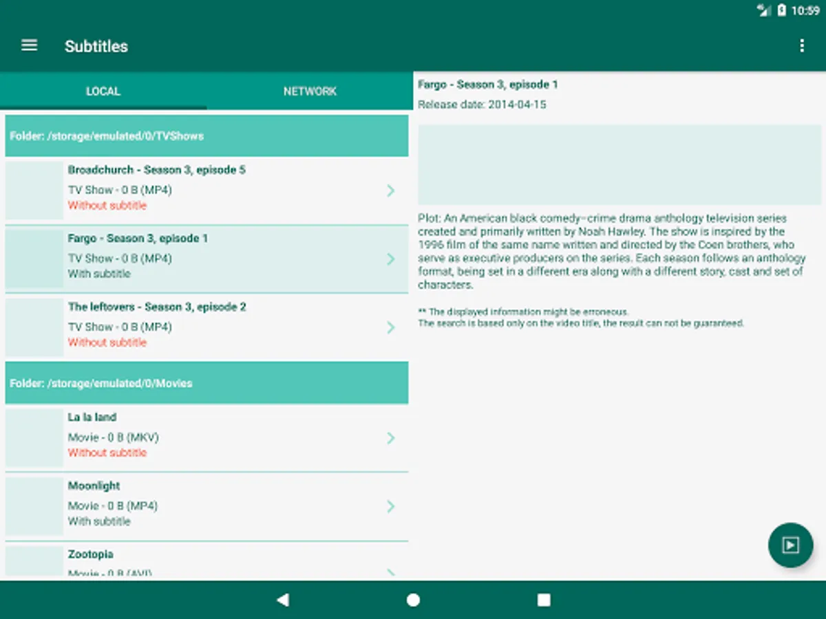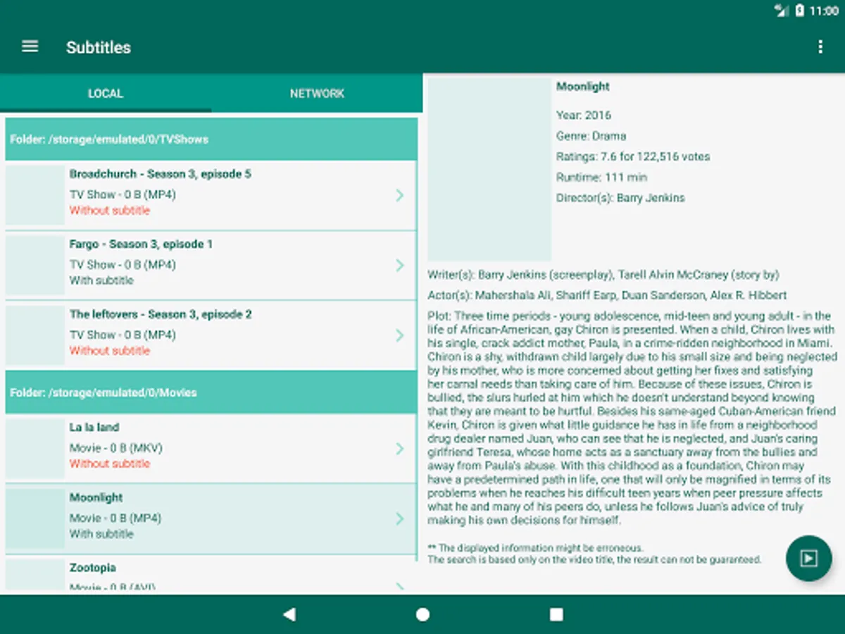 * Videos details from The Movie Database or theTVDb.com are embedded in the application. If needed, a direct access to the IMDB site or IMDB android application is possible
