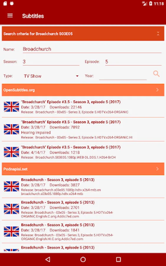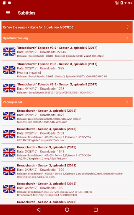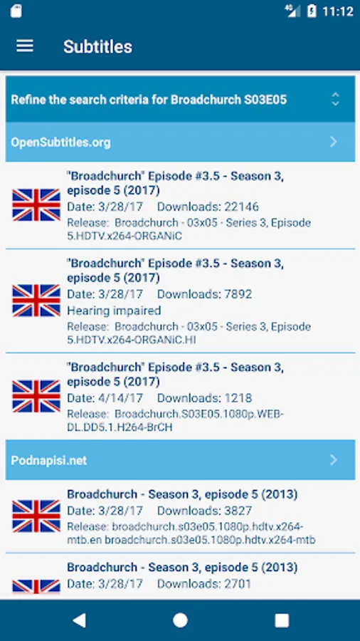 * Manual download of subtitles from OpenSubtitles.org, Podnapisi.net and BetaSeries.com