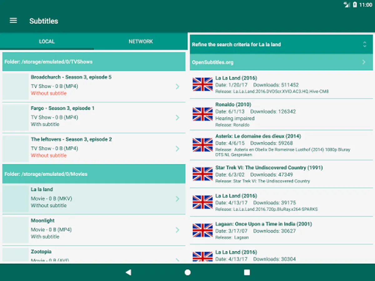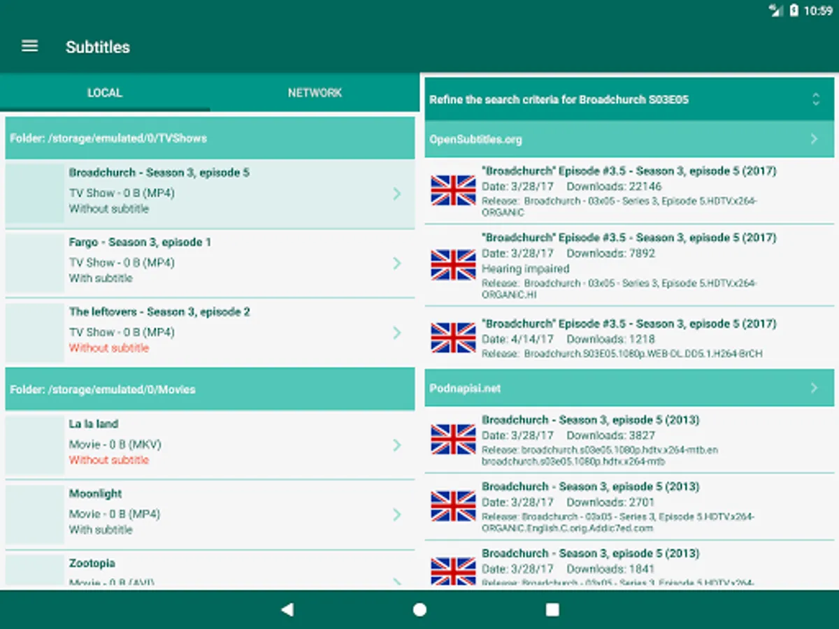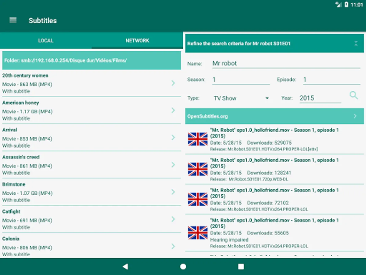 This software makes it easy to download movies or tv shows subtitles on your phone, your tablet or any device connected to the network (NAS, computer, ...).